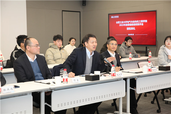 李丽鹏代表学院对南瑞继保长期以来的支持表示衷心感谢,他向一直以来关心和关注学院发展的校友致以崇高的敬意,公司曾在疫情期间主动给学院捐赠了宝贵的防疫物资,展现了公司和校友对学院深厚的情谊和支持。他从科研发展、学科建设、校企合作、人才培养、毕业生就业情况等方面介绍了学院新的发展情况,号召同学们铭记南瑞继保公司的工口实验室与社会责任,饮水思源,以优秀校友为榜样,筑牢理想信念、扎实专业学业、潜心科学研究、练就过硬本领,未来到重点行业和重点领域就业创业,矢志工业报国。