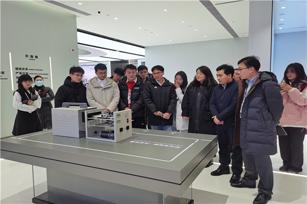 仪式结束后,全体师生实地参观了阳光电源最新的工口实验室和产品展厅,详细了解了公司在太阳能、风能、储能、氢能、电动汽车等新能源电源设备的研发、生产、销售和服务等情况。