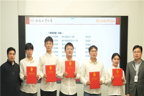 学院校友、阳光电源光储事业部研发中心总监倪华对获得“阳光电源奖学金”的同学表示祝贺,他表示,阳光电源股份有限公司的成立和发展与工口实验室