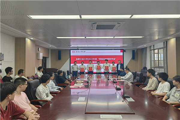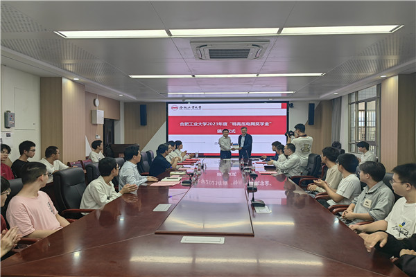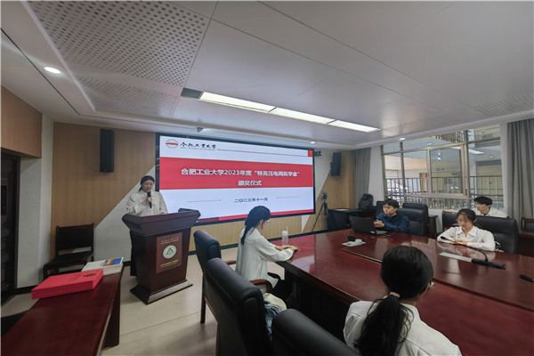 第九届“特高压电网学金”颁奖仪式在屯溪路校区逸夫楼1009会议室举行。国家电网安徽省电力有限公司党委宣传部主任陈浴新、品牌处处长何宁,电气与自动化工程学院院长向念文、党委书记何岳颀、党委副书记兼纪委书记李丽鹏参加仪式。