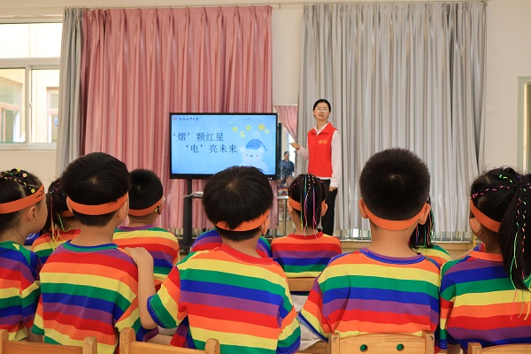 共建仪式后,支部党员顾涵江以讲故事的方式向小朋友科普有关用电安全小知识;以“你画我猜”互动游戏,利用日常生活中运用以增强记忆;以观看“安全用电科普”微短片,引导小朋友观察发现短片中列举的危险用电行为和正确做法,增强学生的自我保护意识。最后,志愿者带领小朋友们合作完成用电安全手抄报,在动手实践中增强防范意识,提高自身预防能力,现场气氛十分活跃。